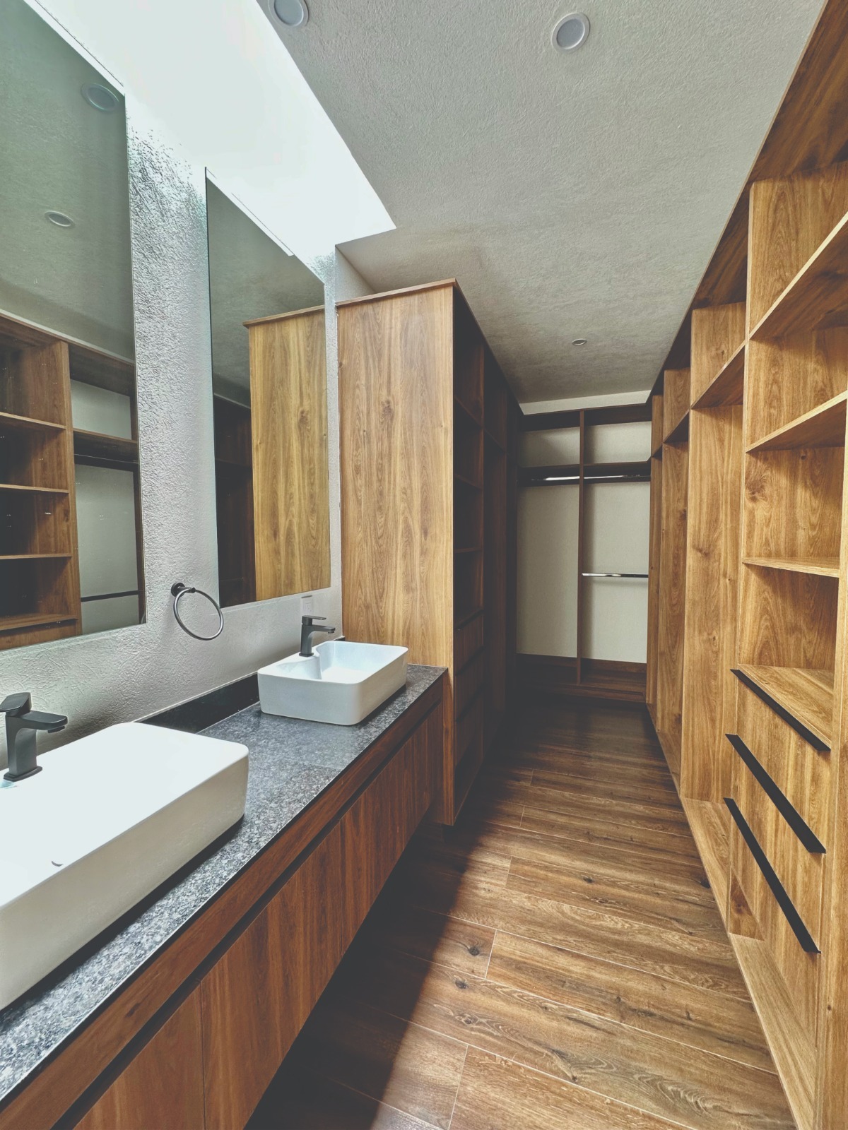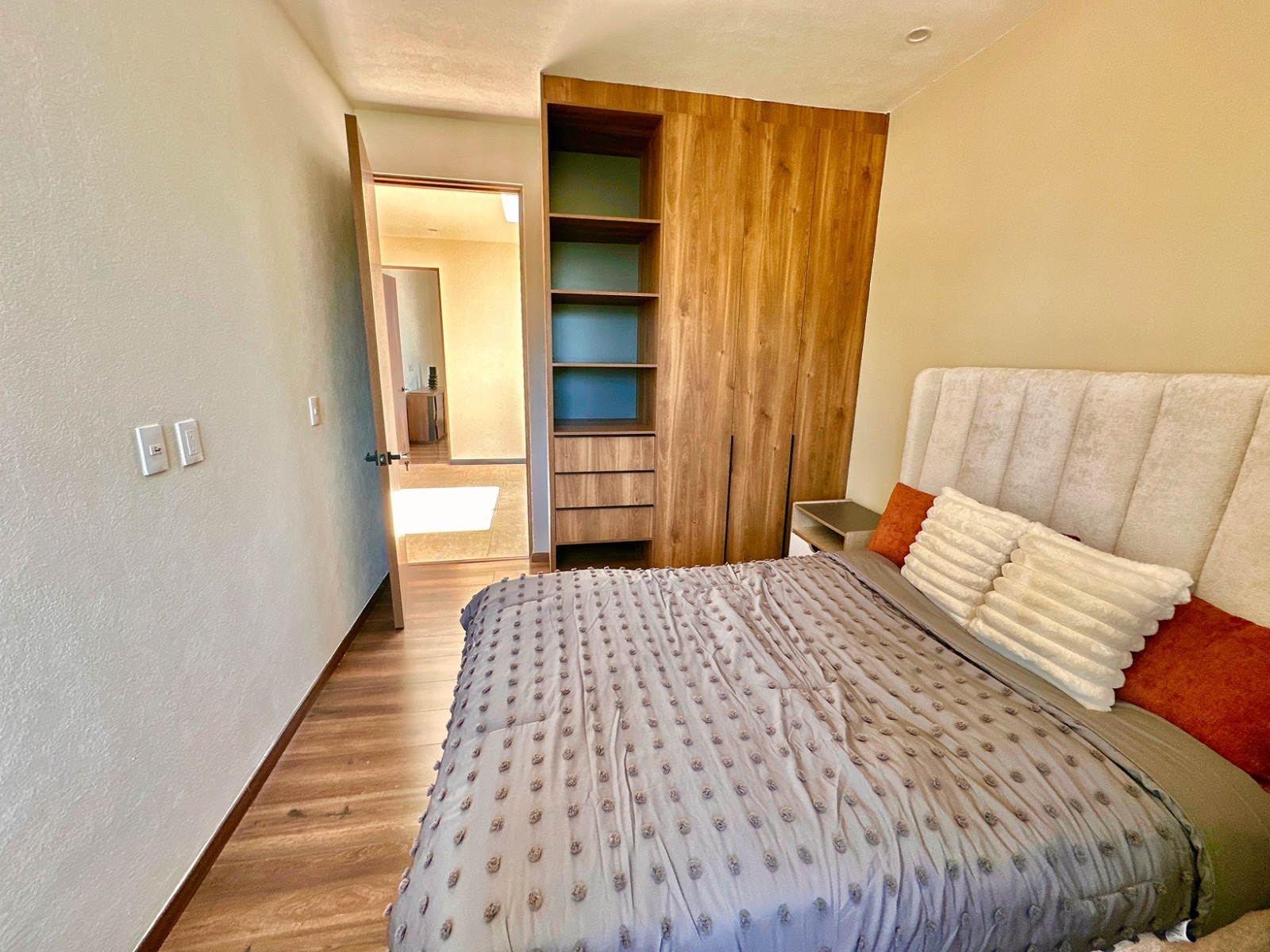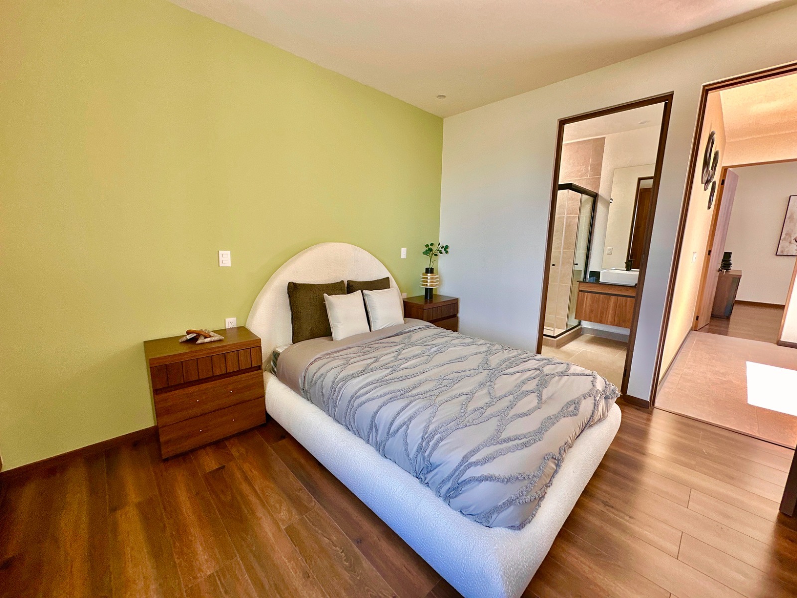 En la planta alta, la privacidad es la protagonista. La habitación principal es un verdadero refugio con vestidor y baño completo. Lo más destacado del Modelo Nogal es que la tercera y cuarta habitación también cuentan con su propio clóset y baño completo independiente. Es el hogar donde nadie tiene que esperar y todos disfrutan de su propio espacio de lujo.