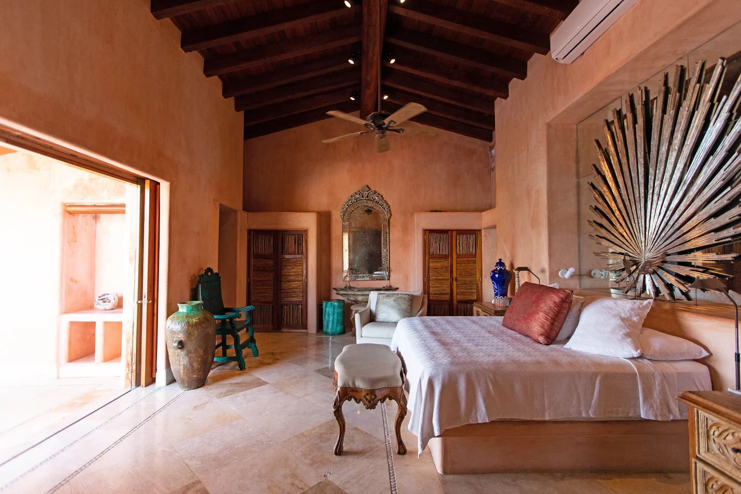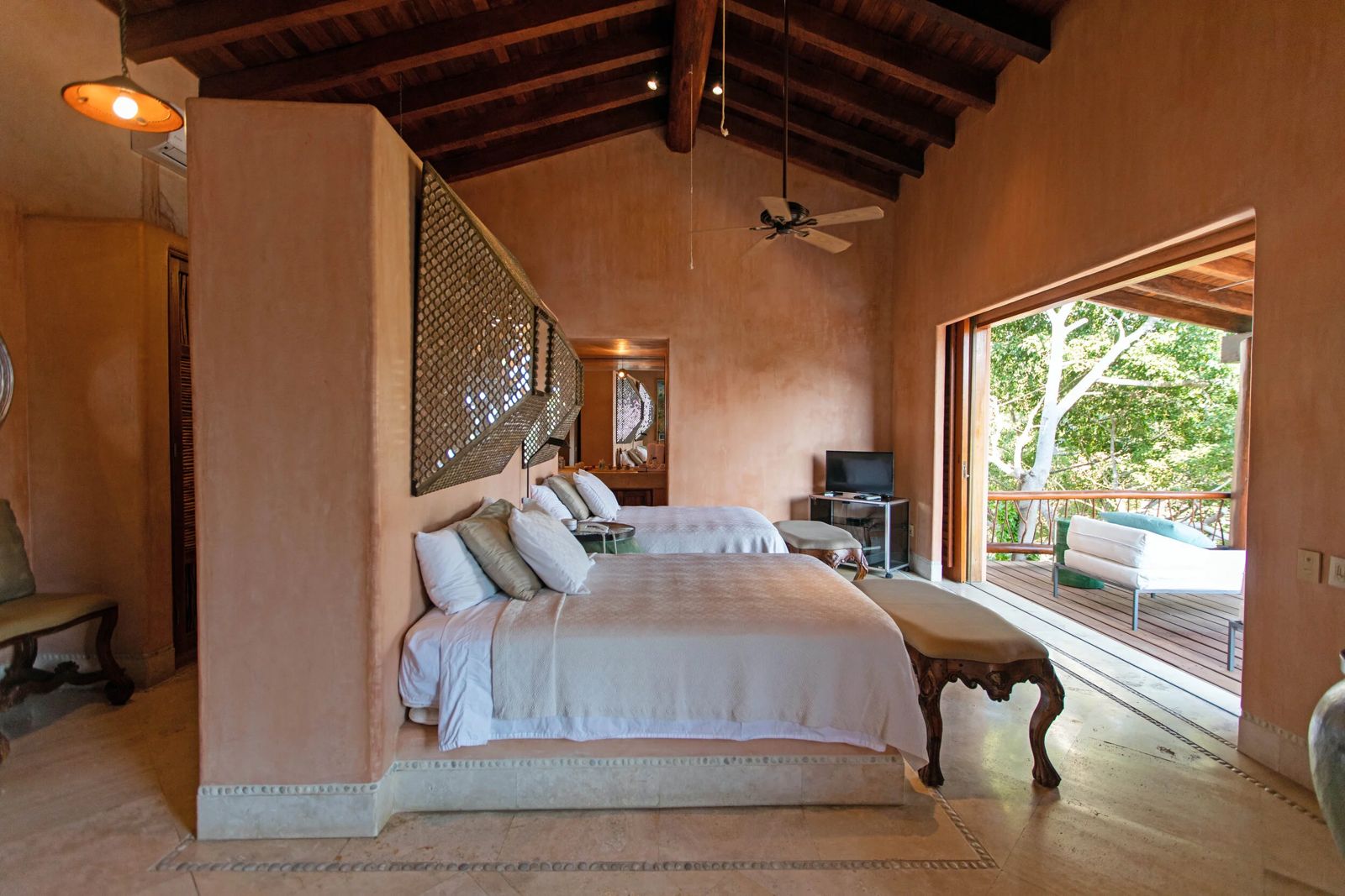 Con 7 suites, todas con baño privado y terrazas, algunas con plunge pool, la residencia ofrece alojamiento cómodo para hasta 14 huéspedes, además de áreas sociales ideales para eventos exclusivos de hasta 50 personas. La suite principal integra un estudio privado, elevando aún más el estándar de confort y funcionalidad.